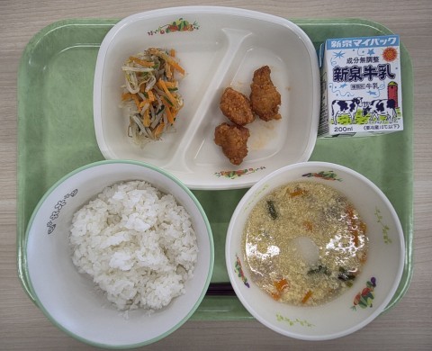 かき卵スープに韓国の平べったいおもち「トック」が入っていました。