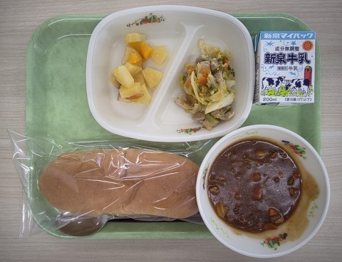 皮付きのリンゴが入ったいろどり鮮やかなコンポートでした。しっかり煮ているので,皮も柔らかくて食べやすかったです。
