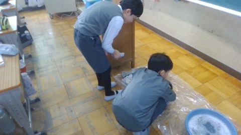 家庭科の授業の一環で,今日は教室内のよごれをきれいにしました。