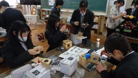 電気回路の学習の一環として,ラジオの製作を行っています。
