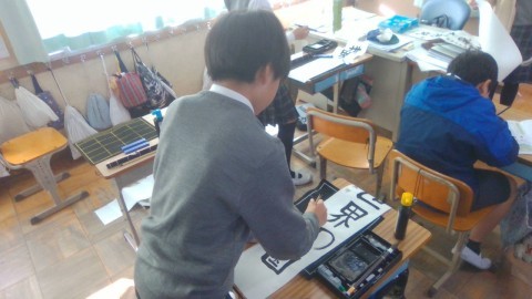 「難しい」「途中で墨が切れちゃう」など、戸惑いながらも一生懸命取り組む姿が見られました。