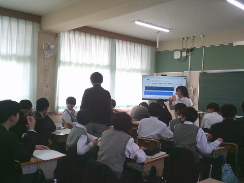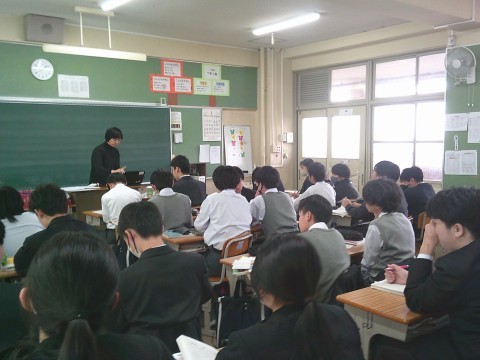 7年生の理科の授業では,音の伝わり方について学んでいました。はじめは,糸電話を使って,小学校で習ったことを復習していました。次は,糸電話の糸の部分に金属のばねを使用したばね電話で,どんなふうに音が伝わるのか子どもたちは興味津々でした。どんな風に音が伝わったのかは,ぜひ7年生に尋ねてみてください。
