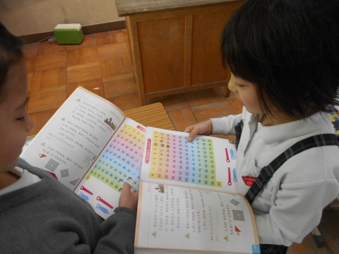 写真は,かくれた数を考える問題を出し合って交流している様子です。