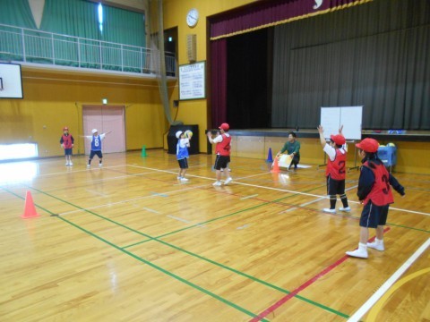はじめに比べて,ボールを投げて得点したり,相手チームの得点をて防いだり,