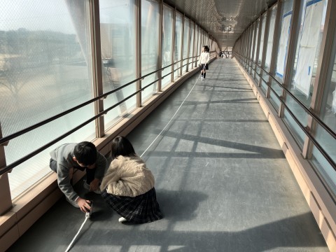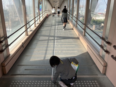 なかよし橋などはメジャーの長さが足りなかったので協力と工夫して,つぎ足しながらはかっていました。
