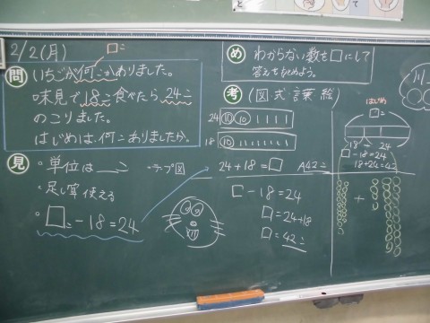金曜日は問題文でわかっていない数があるときは,□を使って式に表せることを学びました。