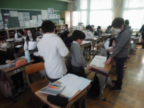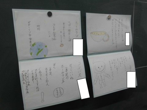 詩を作っています。くふうして作った詩を丁寧に書き、絵も上手につけていました。