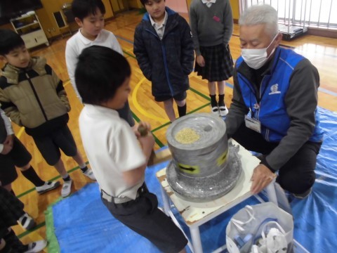 堺市博物館の方に来ていただき、昔のくらしについて、体験を中心にたくさん教えていただきました!!