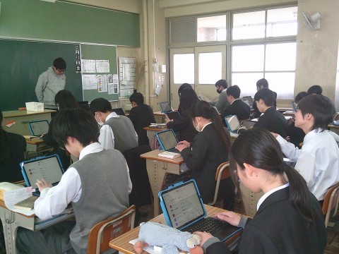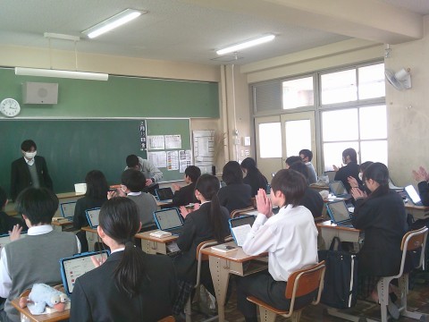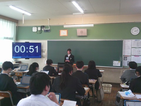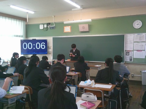 8年生は総合的な学習の時間でビブリオバトル(おすすめの本を効果的に紹介する)を行いました。緊張しながらも,しっかりみんなに伝わる声で話していました。発表が終わるとiPadのTeamsの機能を使って,一人ひとりにコメントを送信しました。