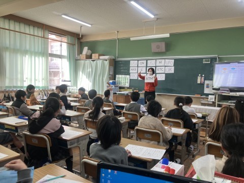 英語ではアルファベットの勉強をしたり,新しく導入されたiPadを使って授業をしました。