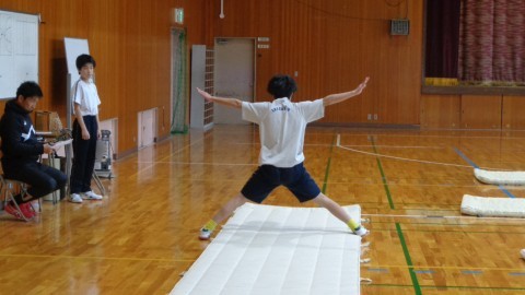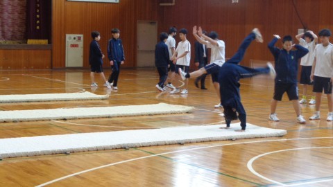 どうしたらうまくできるのか。中間と考えたり,自分の頭の中で考えたりして,整理してからマットに向かう姿が印象的です。