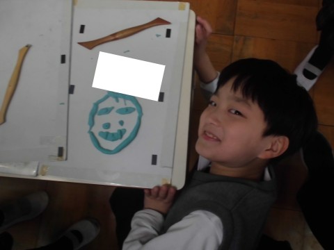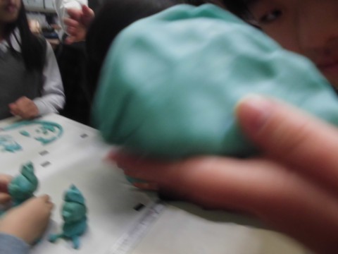 ねんどをつかった実験後、休み時間はねんど遊び。