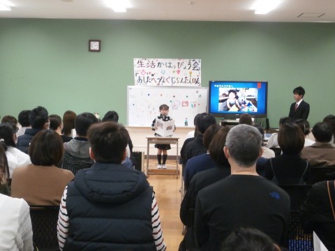 生活科発表会~あしたへつなぐ じぶんたんけん~と題し,生まれてから今までの自分をふりかえり,お家の方への感謝の気持ちを伝えました。