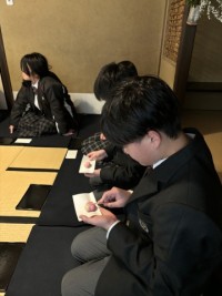 講師の先生からお話を伺い、生徒代表がお礼の言葉を伝えました。「同じ人間、同じ心を持っている、周りの人を大切にしていきたい」と話していました。
