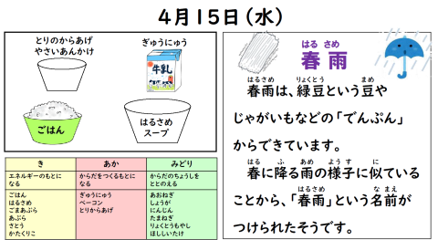 【小学校】本日の給食~4月15日(水)~