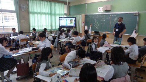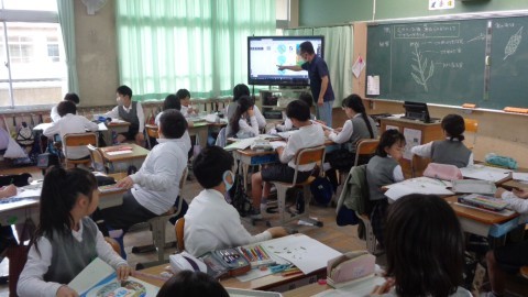 グループで考えたり,先生の話を聴いたり,画面を見たりしながら学習内容を深めています。