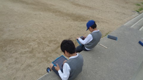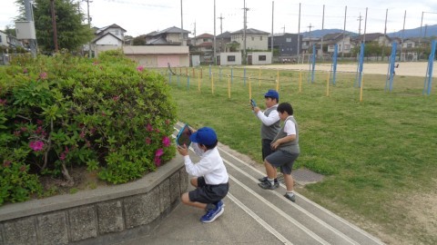 ipadを持ち出して運動場へ行き,いろいろな植物(花など)や虫の写真を撮りながら調べています。