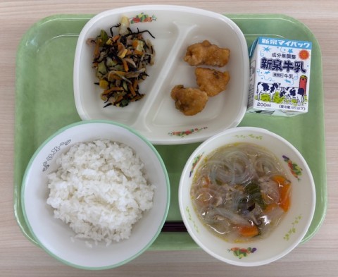 ・ご飯・油淋鶏・ひじきの中華炒め・春雨スープ