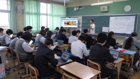 ipadを活用しているので,図の拡大などが容易にできるため,細部に至るまで確認し,考えることができますね。