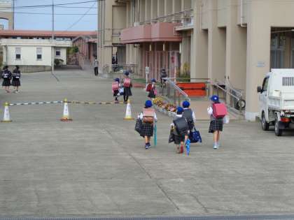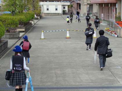 朝の登校風景 〜登校時間は晴れていましたが〜