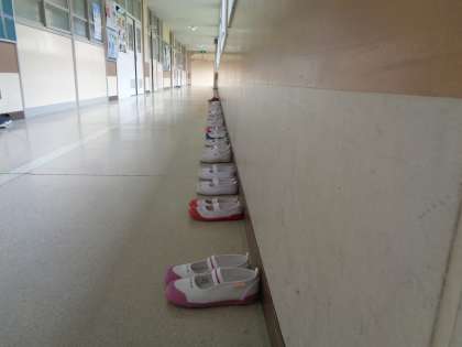保健室前の廊下には,きっちりと並んだ上靴が子どもたちの心を表しているようです。