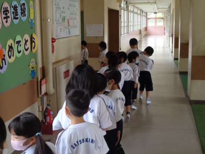 測定が終わっても静かに並んで教室まで戻ることができていました。