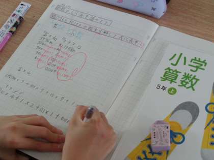 5年2組でも「3776」「42.195」の数の仕組みを考えています。