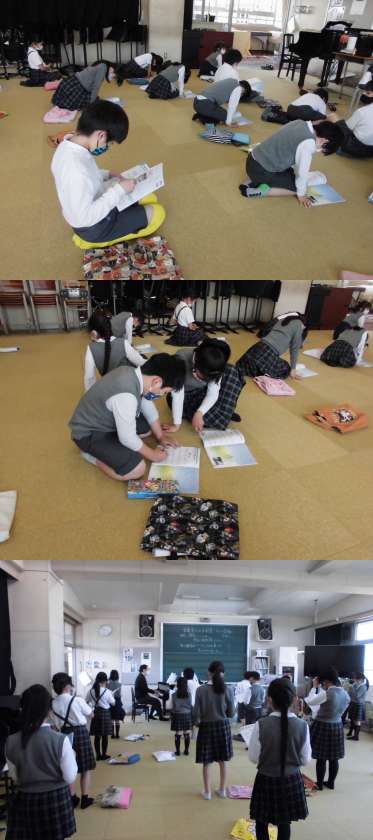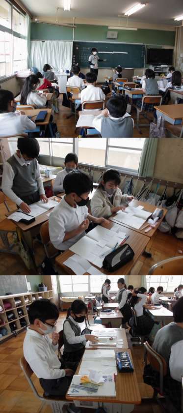 1組は音楽です。新しい歌「まきばの朝」の歌詞の情景や意味を読み取っています。そのあと,歌ってみました。大きな声で歌えないのが残念ですね。