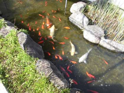 池には,たくさんの鯉や金魚もいるのですよ。また見てね。
