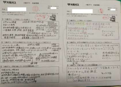 今日は大阪ガスの方に来ていただき、大阪ガスの企業努力や社会貢献活動などについてをお話ししていただきました。