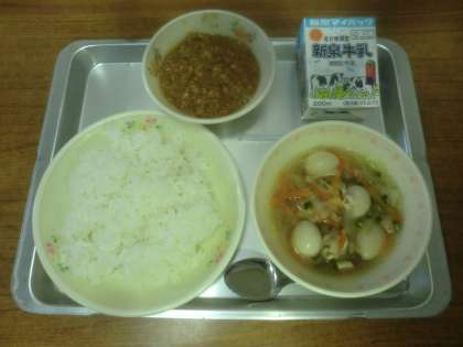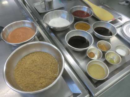 今日の「こめこのドライカレー」には,こんなに沢山の調味料やスパイスが使われていました!クミンにナツメグ,ローリエ,リンゴペースト,etc...。とても本格的な味が楽しめたのではないでしょうか♪