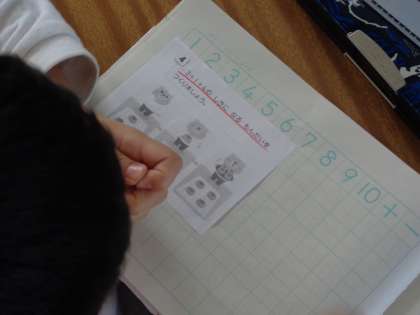 「足す」という概念を,1年生の言葉でどう表すか。がんばれ!