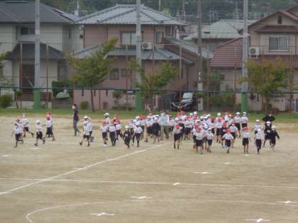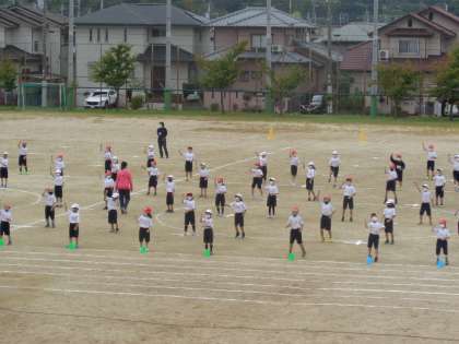 あいうえおかきくけこ〜♪とGReeeeNの「あいうえおんがく」に乗ってかわいく踊っている1・2年生。