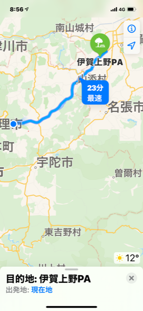 トイレ休憩の伊賀上野SAまで、20分程かかります。30分ほど遅れています。