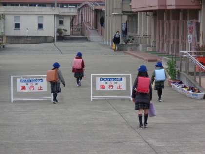 ■今朝の登校風景 〜9年生は私立高校入試当日です〜