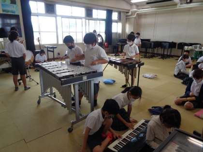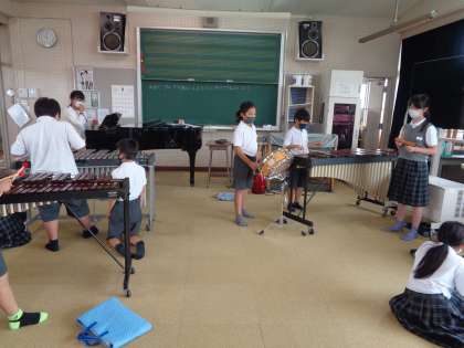 もう一度,工夫するところ意識するところをグループで話し合います。みんなと合わそう!元気に演奏しよう!と意識するグループもありました。