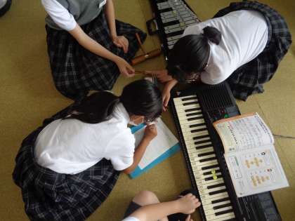 グループごとに工夫するところを考えて,合奏します。音もしっかり出てきて音の重なりが美しくなってきました。