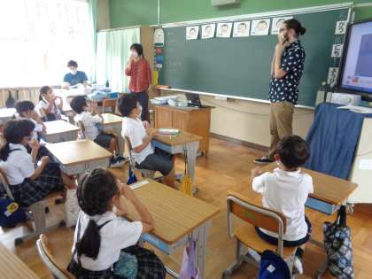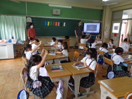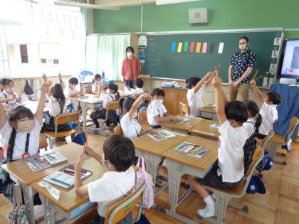色えんぴつセットを用意し,NSの先生が言った色を答えます。