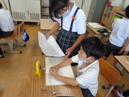 具体物の時計を使ったり,グラフで計算したりして考えています。考えた答えを友達と伝えあって,学びを深めていきます。