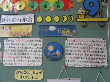 9月の給食では「お月見献立」や「さんまメニュー」などがあるようです。