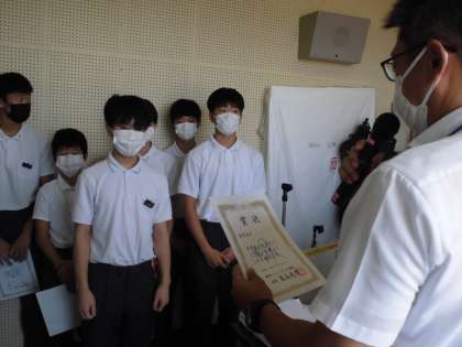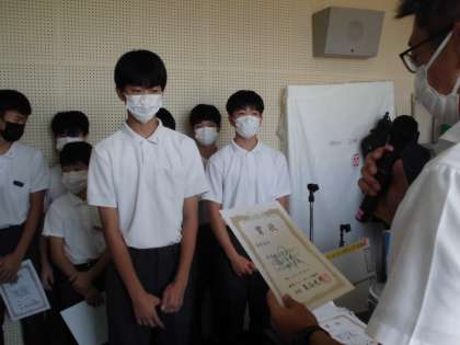 男子バレー部は泉北地区予選優勝・堺市総合体育大会優勝・個人の優秀選手や大阪南選抜に選ばれた選手など数多くの賞状や楯・優勝カップなどがありました。