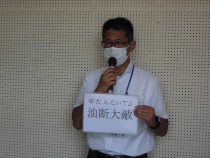 9月の全校集会では「油断大敵」の四字熟語から,熱中症と自然災害への意識を持ってほしいと話をしました。
