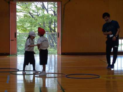 楽しく体を動かしながら,授業が進んでいます。