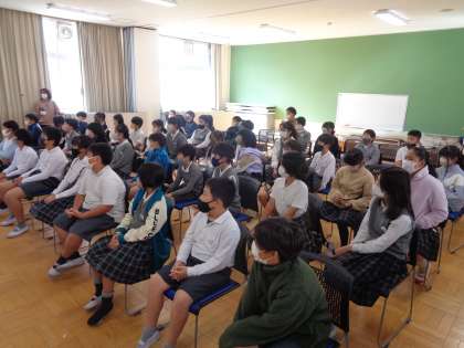 堺少年サポートセンターの講師の先生から,それぞれのケースで対処の方法などを学習しました。しっかり聴いている姿に感心しました。