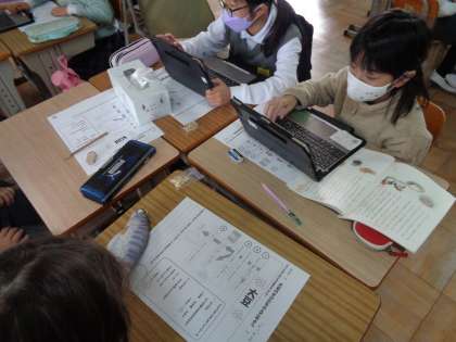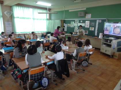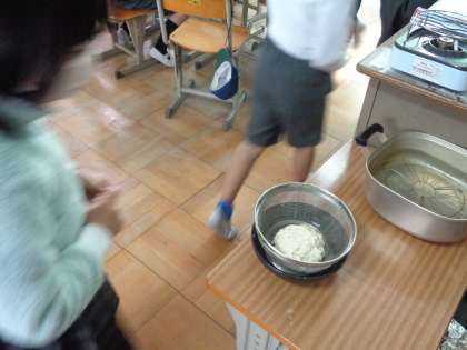 3年生では国語の授業で「すがたをかえる大豆」の学習をしています。今日は栄養教諭の先生から,実際に豆乳を使って豆腐ができるのかを調理してもらいました。