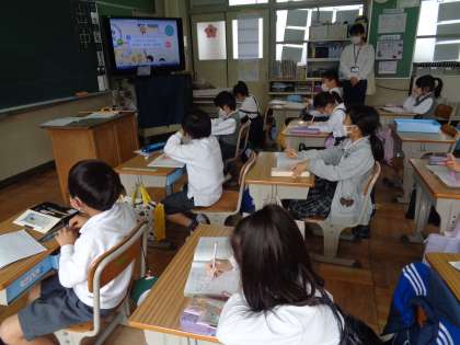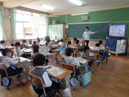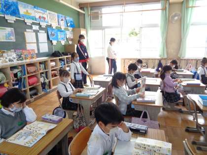 今日は,美原ひがしこども園の園長先生方が,学校での様子を見に来てくださいました。
