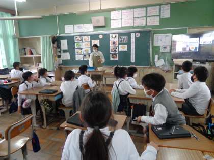 国語で学んでいた大豆がすがたを変えて豆腐になる様子を栄養教諭に見せてもらいました。
