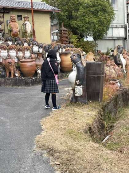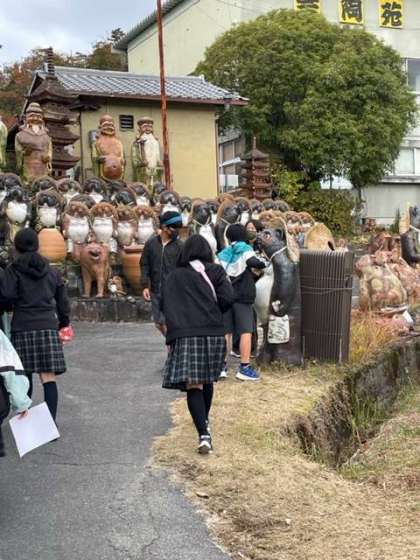 宗陶苑に向かう道にもたくさんの焼き物があります。