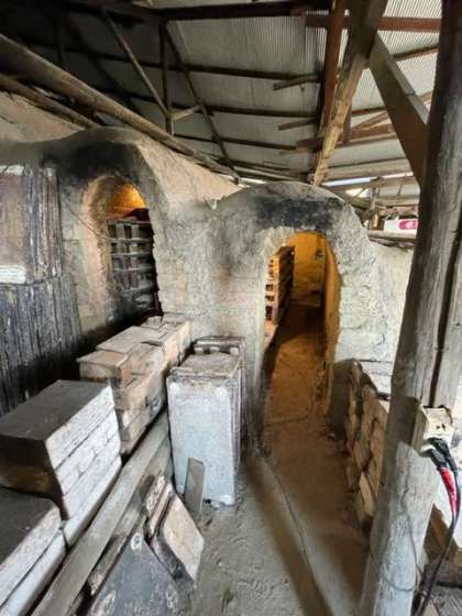 登り窯の横を抜けて、見学します。なかなか見ることのできない光景です。