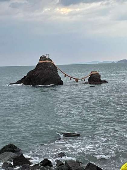 夫婦岩です。薄暗くなってきました。
